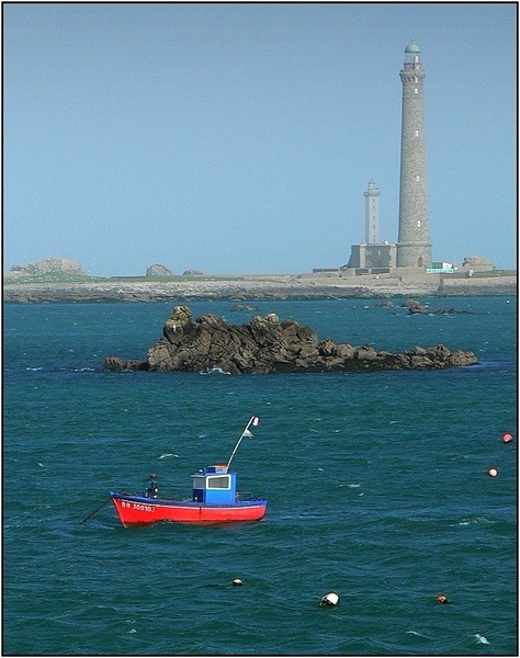 jolies couleurs... compo bateau / rocher / phare intéressante