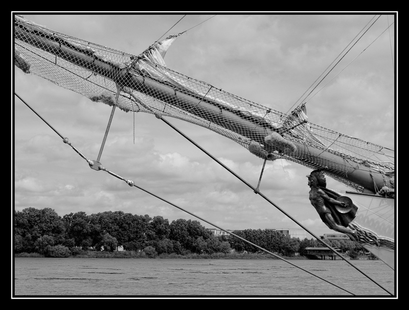avec ce genre de PDV je ne sais jamais si j'ai trop zoomé ou pas assez ,là je trouve que tu t'en sort bien ,j'aime bien cette toile d'araignée qui coupe le paysage et qui enveloppe la figure de proue
