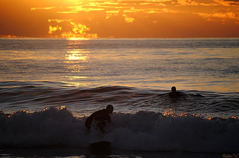 Merci pour ton avis mariefro ! Ben en fait j'ai plusieurs clichés avec des PDF différentes. Mais j'ai choisi celle-ci avec le fond légèrement flou car il me semble que sur celles où le fond est net le regard en première lecture se porte sur le coucher de soleil et non sur les surfers. Ce qui n'était pas le but de ma publication. Amts