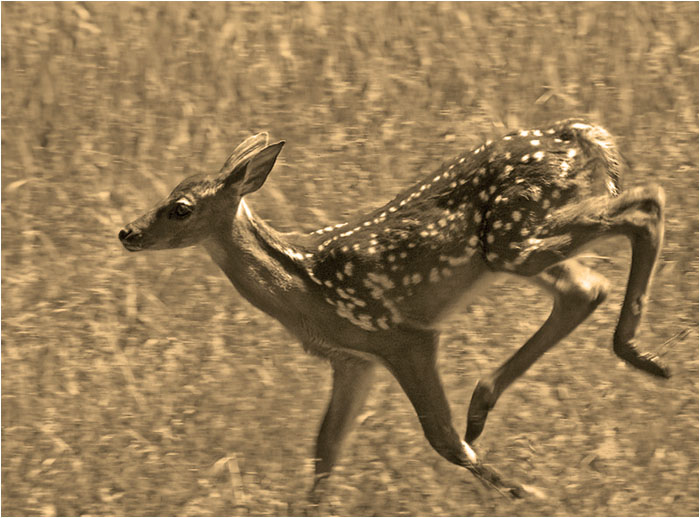Depuis quelques jours, le froid aidant, j'explore mes archives à la recherche de photos pouvant supporter le n-b ou le 2 tons. Je me suis aperçu que le sépia se prête bien à certains animaux comme ici, le Cerf de Virginie.