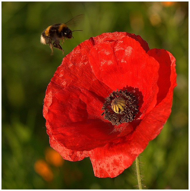 J'aime bien cette compo en carré. Bien la place du bourdon Les nuances des pétales sont bien rendues et le bokeh est bien flou.