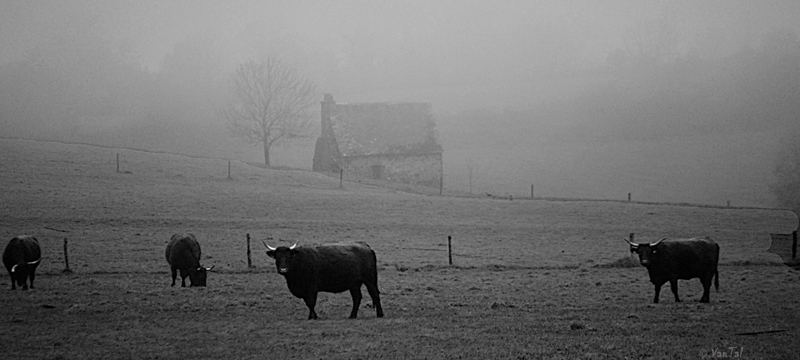 J'aurais peut etre décentré un poil la maison pour ne pas couper l'arbre de droite. Sinon j'aime beaucoup cette ambiance brumeuse.
