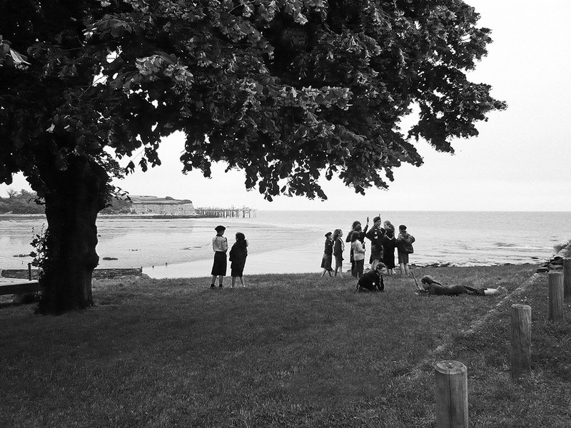 les .... n'aident pas, des scouts, en ballade ... que font ils ? rien ? je ne suis pas trop convaincu par le sujet, ni la compo, avec ces poteaux qui partent à droite, le vide blanc à gauche du tronc qui réouvre le cadre ...