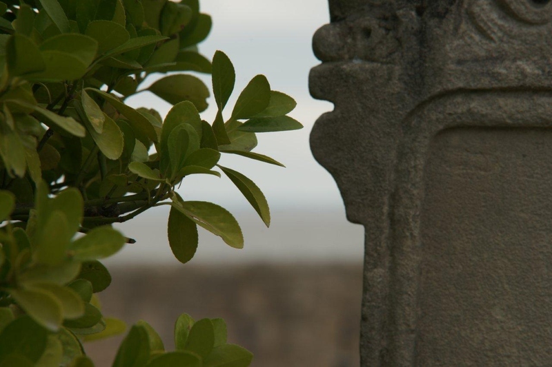 Jolie atmosphère colorée, et puis la statue qui a l'air de vouloir croquer les feuilles, un sourire...