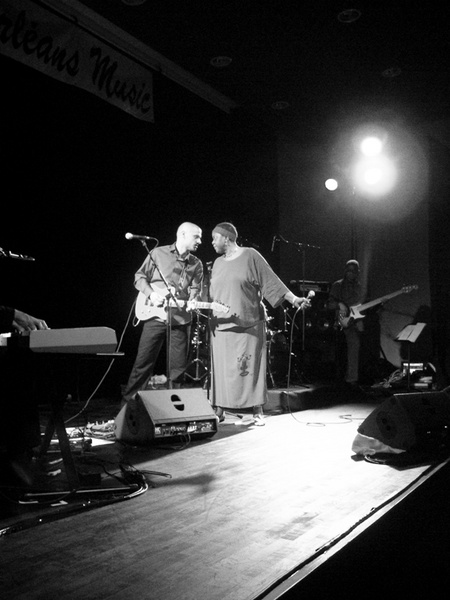 Toujours difficile de réussir les photos de concert, mais tu ne t'en sors pas mal. Peut-être revoir le cadrage qui comporte trop d'espace vide au premier plan, et le claviériste coupé n'apporte rien, du moins à mon avis.