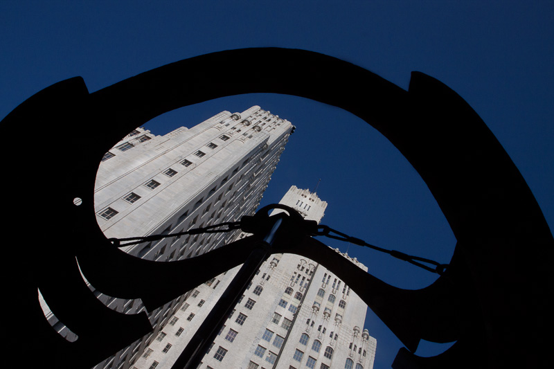 Je me suis allongé sur le dos au-dessous d'une sculpture en acier qui s'est trouvée sur le toit du musée. La guardienne n'était pas bien contente de voir des telles acrobaties, mais elle s'est tue faute d'une règle portant sur ce modus operandi photographique (tel qu'il soit).