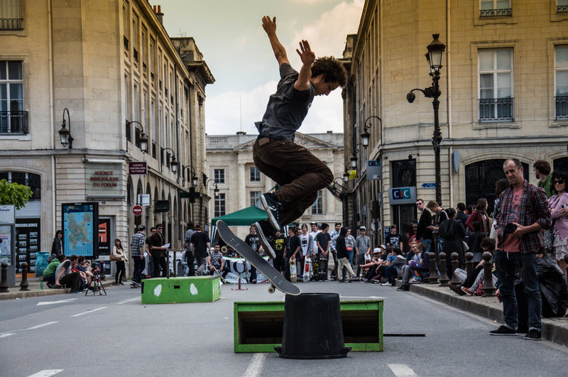 Photo très dynamique, joli pose du skateur.