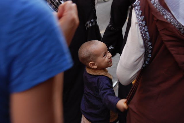 la tête du petit est en plein centre de l'image (ce qui n'est pas trop apprécié par les as de la composition d'image de cp) ,je trouve que ça fonctionne pour cette photo.