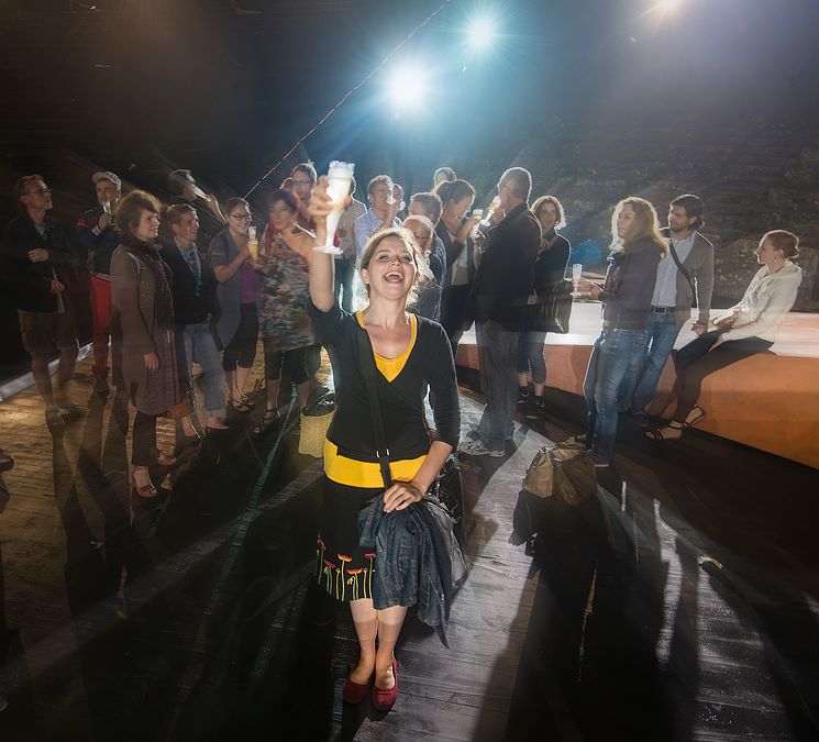 Champagne sur scène offert aux artistes après la dernière de Nabucco !
