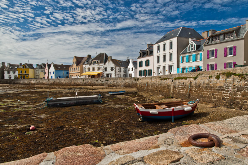 Belle photo, on n'imagine pas l'île de Sein avec ces couleurs, la maison jaune du fond est assez étonnante, je tenterais d'adoucir els volets violets et bleus en premier plan. Mais belle impression.