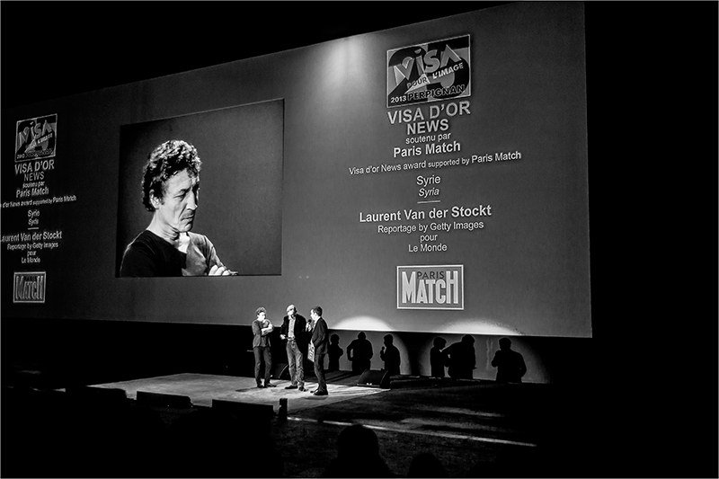 Une bonne photo reportage : le photographe en gros plan au bon endroit dans la composition, un noir et blanc percutant, les ombres des personnes sur scène dans les halos des projecteurs me plaisent bien aussi, le tout avec une légère diagonale.