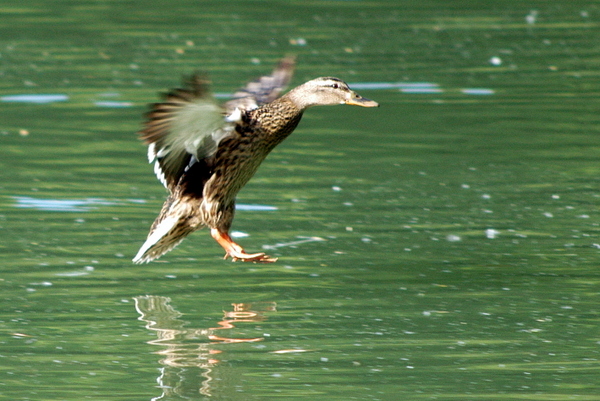 c'est à dire l'oiseau plus près du "plafond" et son reflet plus complet...