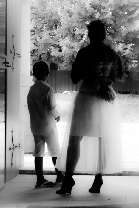 Utilisation originale de ce qui me semble la technique infrarouge. Manque de texture dans surface devant les personnes.