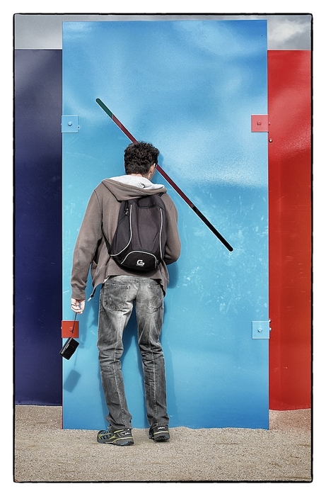 Colorée et graphique...HCB avait fait une image un peu comme celle ci...d'un gars regardant à travers une palissade