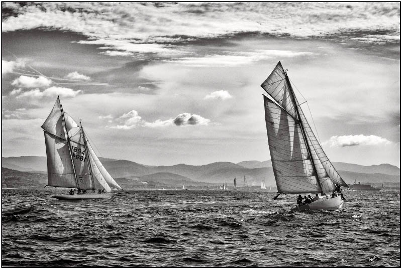 Belle photo, dynamique, le bateau de gauche offre bien sa voilure, super série...