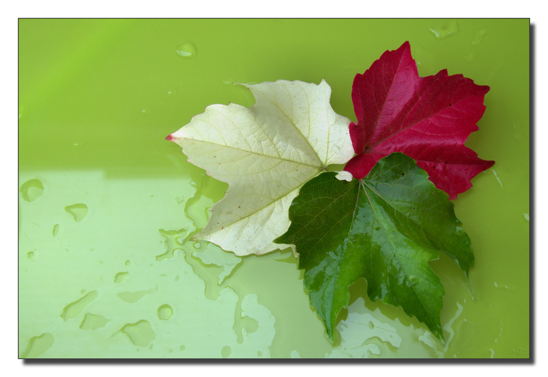 et puis le petit bout rouge de la feuille la plus claire me dérange... peut être justement le poser sur la feuille rouge?