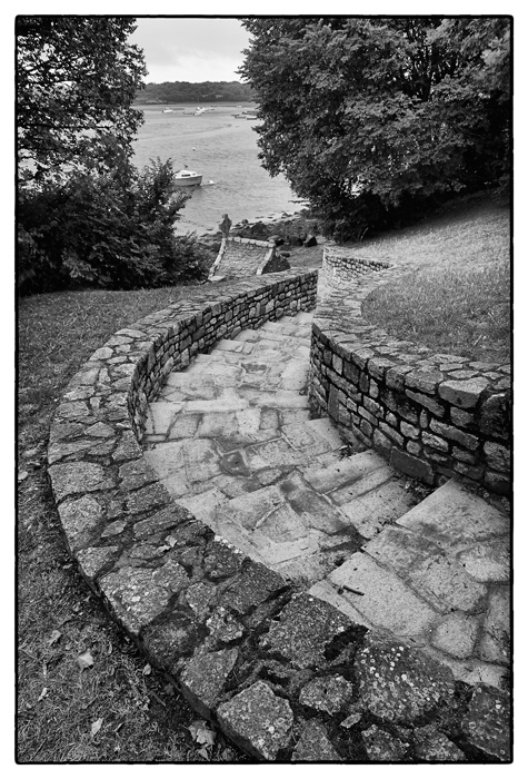 La descente vers la mer dans l’entrebâillement du bosquet d'arbres et la mer jamais étale un peu plus loin laissant le bateau échoué. C'est beau.