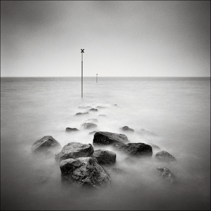 Je mets un avis sur cette photo parce que vraiment, comme toutes celles que tu nous proposes, elle est belle.Minimalisme du sujet et gestion du gris parfaits. La fuite des pierres, la brume, les balises, tout nous guide vers l'horizon. Bravo. Bravo aussi pour les photos que l'on peut voir sur ton site.