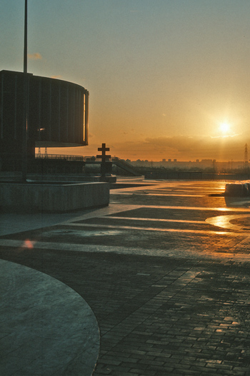 Soleil levant, je pense L'astre me paraît un peu trop bord cadre . Il me semble percevoir un léger basculement. Belle ambiance avec cette croix de Loraine qui se détache.