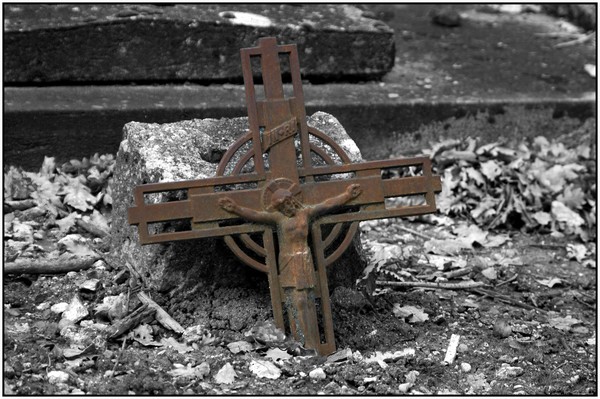 J'adore le contraste de cette croix rouillée dans l'ensemble noir et blanc. C'est très bien réalisé, Bravo