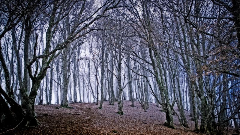 L'on s'attend à voir sortir quelque chose de l'un des côtés. Les arbres au premier plan qui font comme une haie d'honneur au visiteur