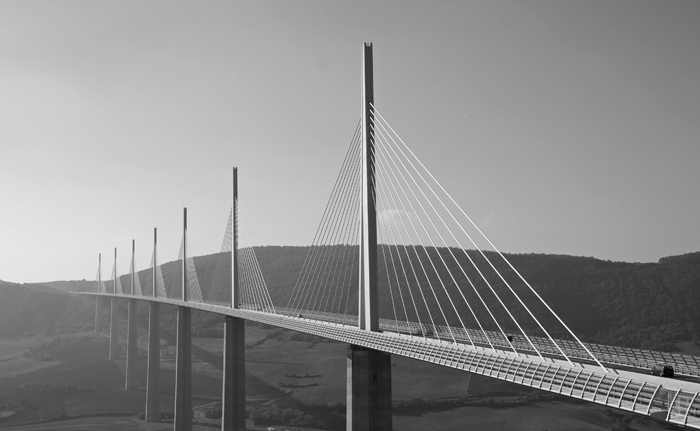 En N&B avec une légère brume au levant, ça s'accorde bien avec la structure. Comme Loumi pour le contraste.