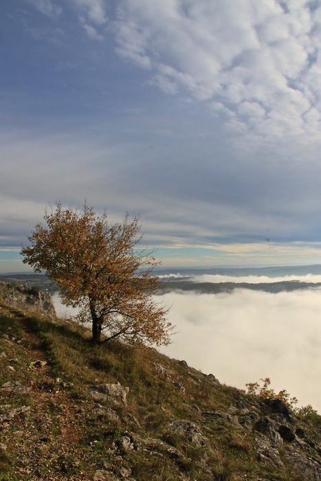 Joli point de vue au dessus du brouillard de la vallée
