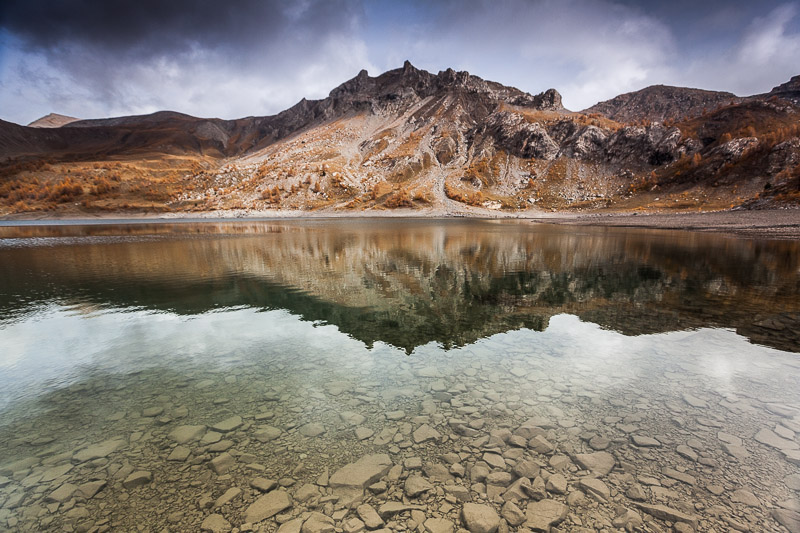 Pour chipoter, je trouve dommage qu'il y ai quelques fripures sur l'eau et que l'ombre des nuages au sommet des montagnes ne se répercute pas sur toute la largeur, mais ça reste une superbe photo