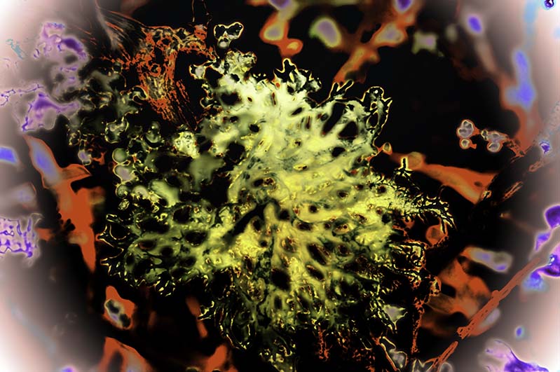 Le but n’est pas de voir du lichen. Par contre, le point de départ de l'abstraction est une photo de lichen. Après, chacun y aperçoit ce qu'il veut, ou rien du tout!