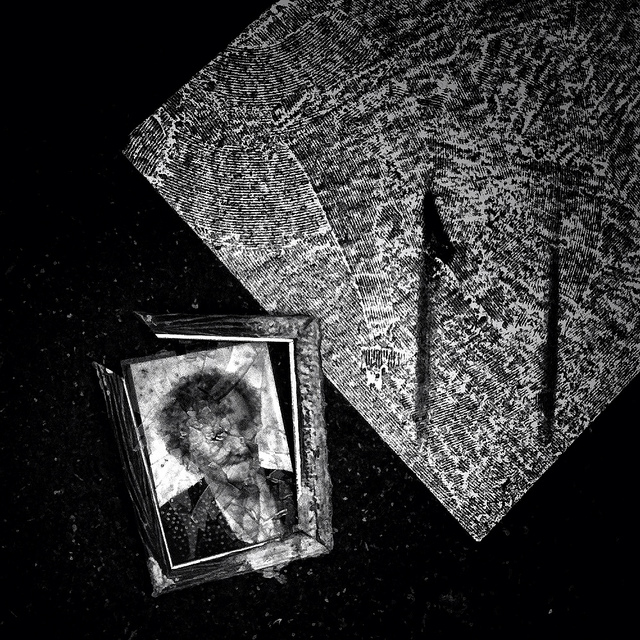 original, de la recherche et des textures, un peu triste et poignant mais très bien rendu. la surface de gauche pose question... était ce le support ? est ce pour évoquer une tapisserie ancienne ou simplement une cassure ?