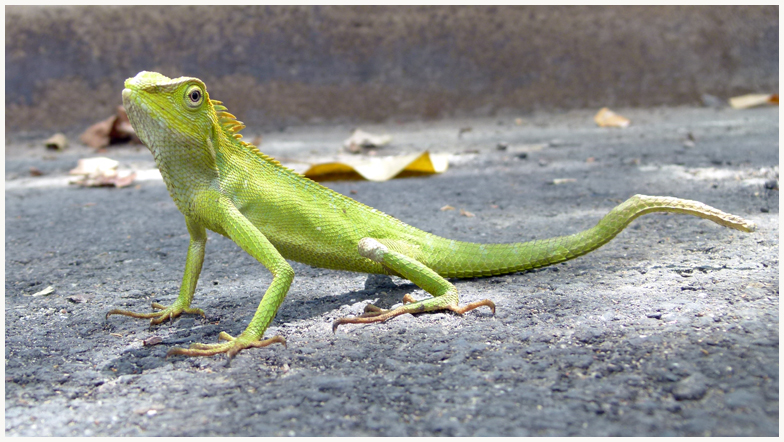 le caméléon venait de tomber d l'arbre et n'a pas eu le temps de changer la couleur de sa robe !