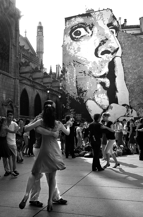 Très bien vu, j'aime beaucoup le mouvement du couple en premier plan et la tête sur le bâtiment.