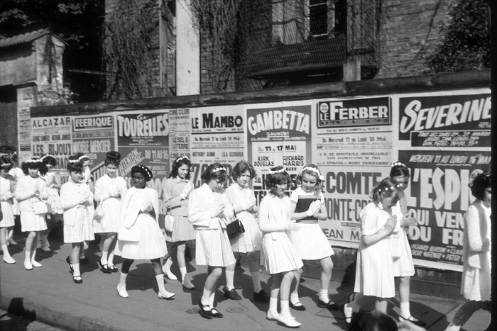 Deux photos en une : les affiches et un jour de petite communion.