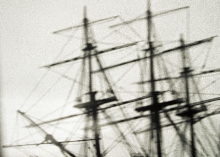 Passionné aussi de modeles reduits de bateaux , j'ai construit une maquette de la fregate flore du musée de la marine , elle est sur un meuble et un grand rayon de soleil , lundi dernier , a fait cette ombre portée sur le mur blanc.J'ai trouvé ça interressant .J'essayerai peut etre avec d'autres , voiles larguées.