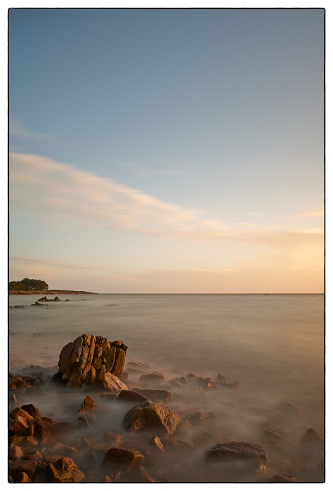 J'aime beaucoup le cadrage, la simplicité de la composition et le rendu de la pose longue . La lumière est très belle. Ca n'a pas beaucoup d'importance mais je distingue mal les vestiges d'un mur. Sans le titre je voyais plutôt un bloc rocheux.
