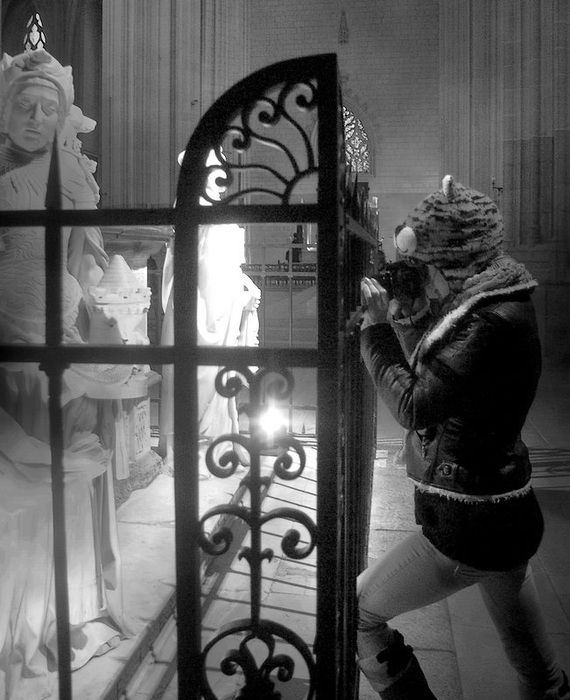 Le parfait décalage de la paparazza et de la sculpture.