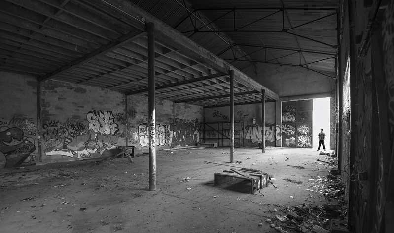 Un vieux hangar que tu as bien mis en valeur par la prise de vue et la présence humaine qui amène un soupçon de vie. Le n&b est bien réalisé