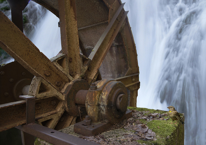 Tchotcho, je croix que l'oiseau determine un cadrage comme ça: le contraste de l'oiseau vis-à-vis la grande machine morte, ca fait le portrait du petit. A mon avis l'eau est le papier peint (et bien pris à 2/5 sec ou mieux 1/5 pour augmenter les details un peu). Il me semble que des tels considerations sont des exigences d'un portrait-trouvé comme ça.