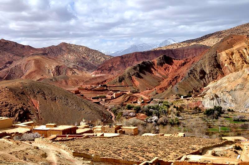 Fusion et confusion de couleurs, à l'arrière plan le légendaire col du Tizin't Tichka enneigé.