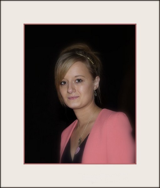 Joli portrait (modèle, position du modèle) mais trop serré à droite, cadre épais qui pour moi n'apporte pas d'amélioration et lumière un peu trop forte. Et je ne comprends pas ce flou en bas à droite