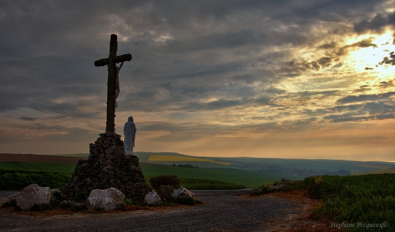 peut être aurait il fallu se reculer un peu pour avoir le coucher sur un tiers et venir redonner de la lumière au calvaire