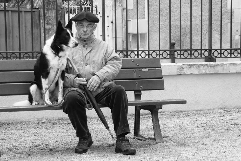 J'aime bien le chien sur le banc et son attitude " quoi je ne vais pas me mettre parterre tout de même"