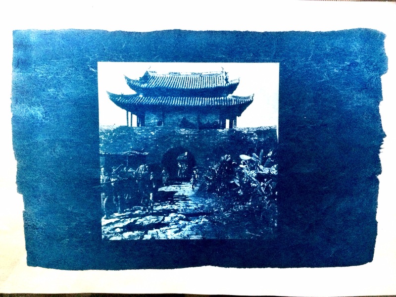 Allez encore un petit cyanotype, celui ci realise sur papier calligraphie Chinois. Exposition 20minutes, renforcement a l eau oxygeenee.