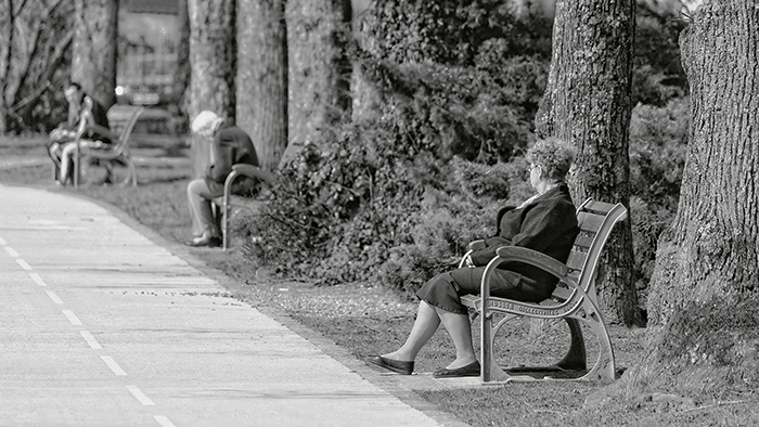 N'aurais tu pas pu placer le personnage au fond symétriquement à la dame, donc sur un tiers ?