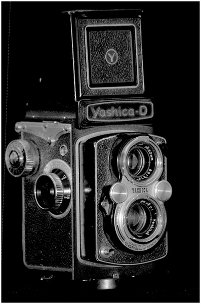 J'ai son petit cousin le Yaschica 635, acheté en 1967. Il a les mêmes caractéristiques que celui-ci mais dispose en plus d'un additif à installer dans la chambre de la pellicule et qui permet de monter des films 35mm. C'est avec cet appareil que j'ai fait mes premières photos au télé de 80mm (en équivalent 24x36 bien sûr).