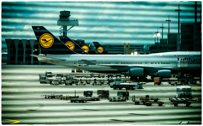 Photo prise à travers un store. Aéroport Francfort