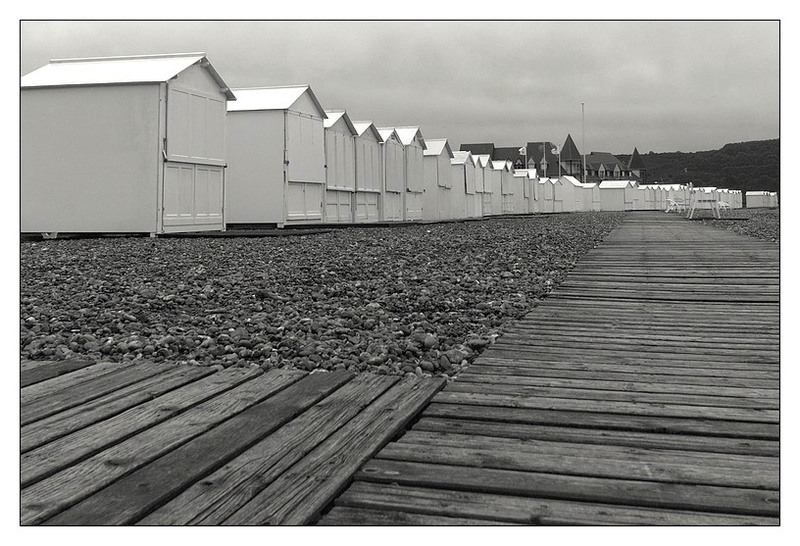 j'aime bien aussi, je trouve qu'il y a un côté à la fois intemporel (lié sans doute au noir et blanc mais aussi à la situation) et assez dynamique avec un agencement des éléments qui amène naturellement vers le fond de la photo, le niveau de détail des galets. Mon regard a par contre un peu tendance à s'arrêter sur le toit des cabanons, peut être du au blanc très blanc qui contraste pas mal je trouve avec les nuances plus grises du reste de la photo