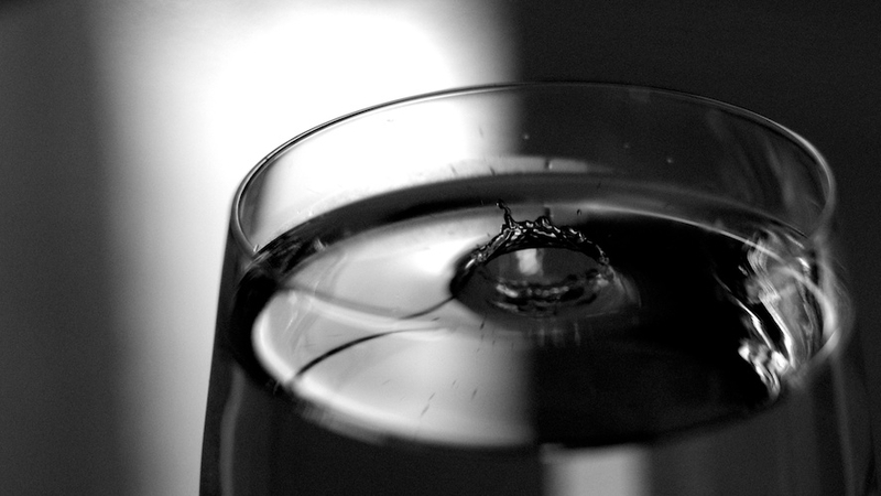 Le verre est aussi peut-être trop présent. N'est-il pas préférable d'essayer d'isoler la goutte d'eau ou la couronne du récipient utilisé?