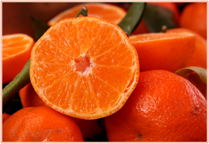 Par contre, j'aurais préféré ne voir que des oranges entieres en arriere plan.