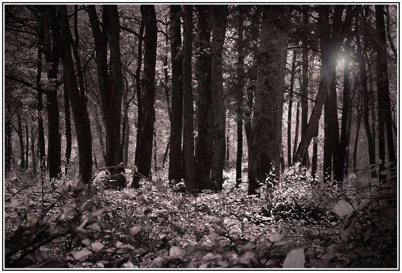 j'aime bcp, luminosité, gestion de l'espace entre le sol et les troncs au-dessus, la coin en bas un peu flou et foncé : à voir ??? rythme des troncs intéressant : sans être trop régulier, il y a une distribution cohérente sur la largeur.